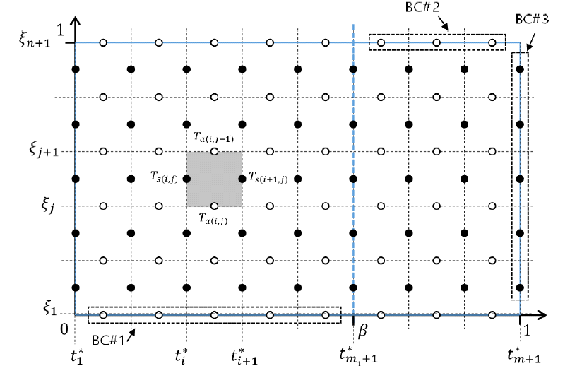 둘째, 유로 내 임의 위치($\xi$, $\eta$)에서 흡착제의 상태량($T_{s}$, $w_{s}$)은 제습휠의 회전주기($\tau$)와 같은