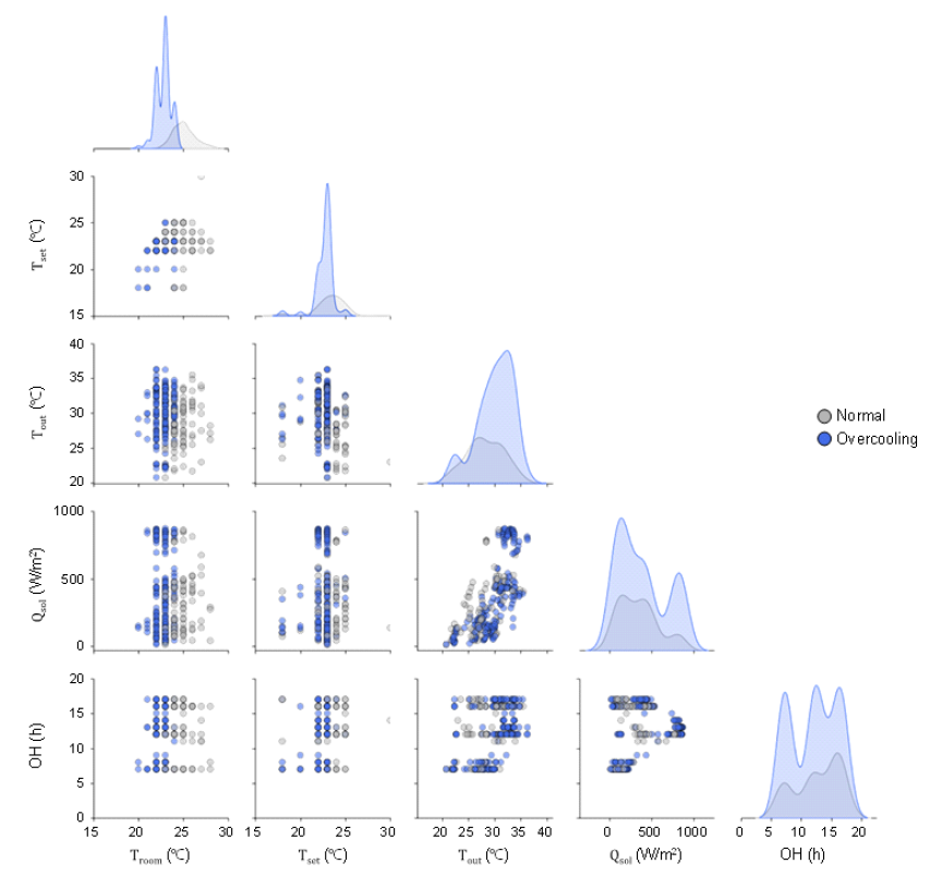 점심시간대(12:00-13:00)에는 외부 부하와 부하 간의 불일치로 인한 과냉의 주요 원인으로 분석되었다. 과냉 그룹은 정상 그룹 대비 평균 외기온도가
