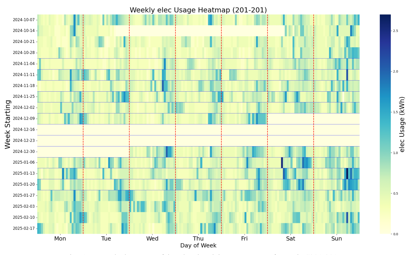 Fig. 1. Example heatmap of hourly electricity energy use for Unit #201-201.
