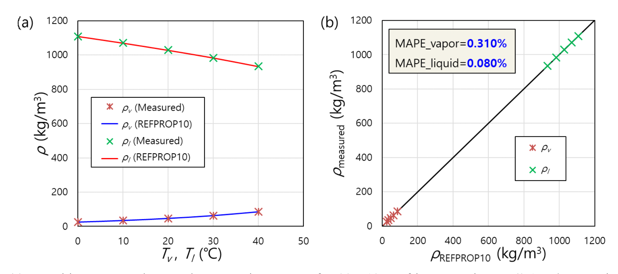 Fig. 4 (a) Densities measured near the saturation state of R32-R125 refrigerant mixture