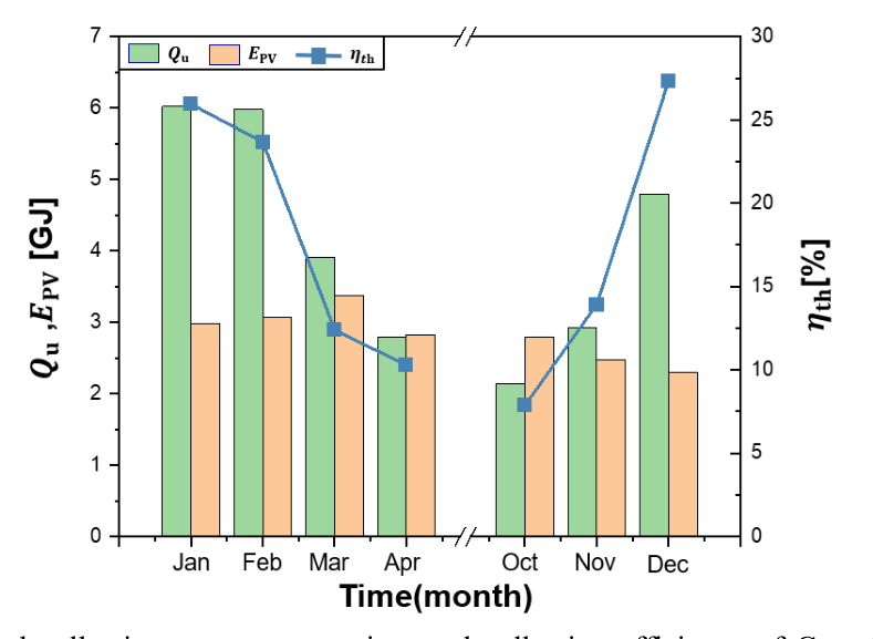 Fig. 5 Monthly PVT thermal collection, power generation, and collection efficiency