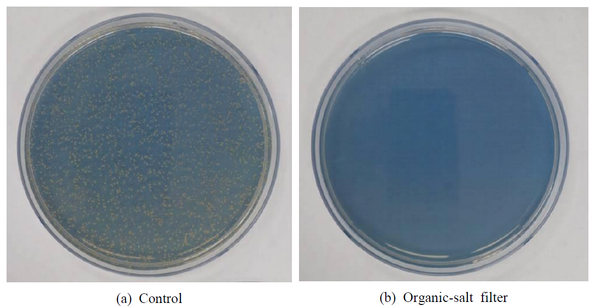이와 같은 배경에서 본 연구는 유기소금 기반으로 개발한 기능성 필터의 항바이러스․항균․항곰팡이 성능을 국제 표준시험(ISO 18184, KS K 0693,