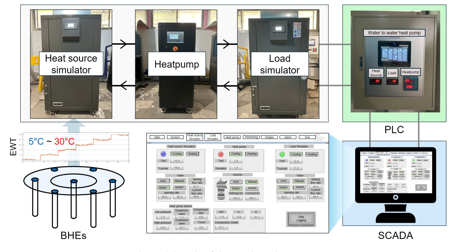 본 연구에서는 ΔT를 고려한 변유량 제어를 적용할 수 있도록, 항온조를 활용하여 지중 온도를 모사할 수 있는 GSHP 히트펌프 모사 장치를 구축하고,